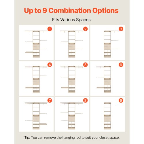 Flexibel konfiguration: Stängerna kan roteras eller tas bort för att passa din garderobsutrymme. Flera layouter gör den lämplig för sovrum, tvättstugor eller klädkammare