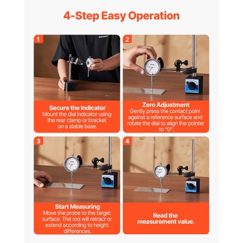 Användarvänlig användning: Den magnetiska basen möjliggör snabb montering och smidig nollställning, vilket gör att den mekaniska mätklockan kan slutföra mätningar i bara fyra steg. Stöder både standardavläsningar och mikrojusteringar för mångsidig användning.