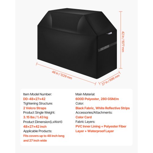 Wide Compatibility Sizes: The dimension of the bbq gas grill is 48x27x42 inches. The universal grill cover fits most grills. Simply measure your grill to find the perfect fit cover. NOTE: This product does not include a grill