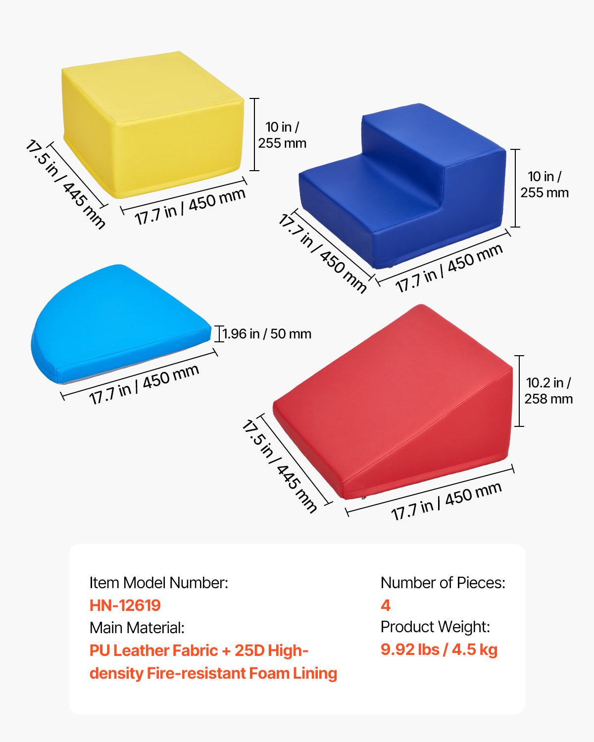 Soft and Durable: The baby climbing blocks are equipped with soft PU fabric and filled with 25D high-density foam for excellent support, making them ideal for climbing or walking. This helps children develop body coordination and improve motor skills. The foam absorbs shock and avoids damage from falls. (Allow 48-72 hours after unpacking for full expansion.)
