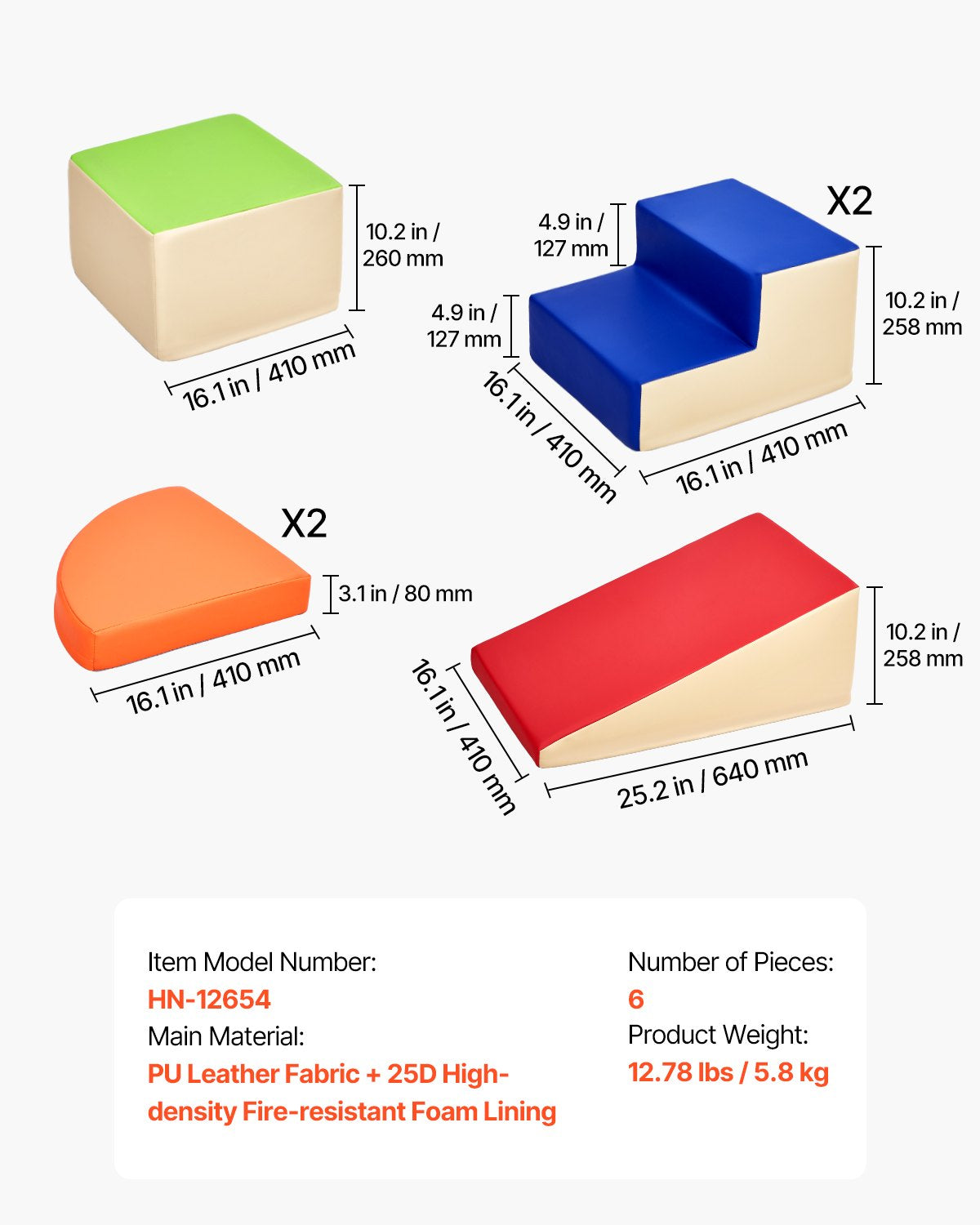 Soft and Durable: The baby climbing blocks are equipped with soft PU fabric and filled with 25D high-density foam for excellent support, making them ideal for climbing or walking. This helps children develop body coordination and improve motor skills. The foam absorbs shock and avoids damage from falls. (Allow 48-72 hours after unpacking for full expansion.)
