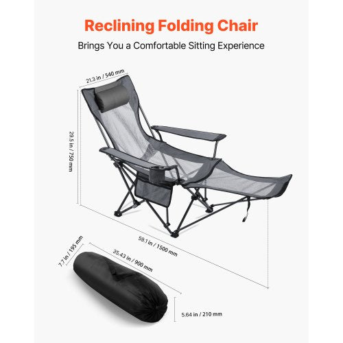 Vilfåtölj, 4 justerbara positioner, bärbar hopfällbar solstol för vuxna, nätstrandstol med nackstöd och fotstöd, stöder 220 lbs, kraftiga campingstolar för uteplats, grå | EU