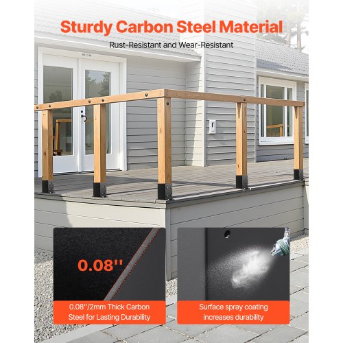 Hållbar och robust: Denna stolpfäste är tillverkad av kolstål med en väggtjocklek på 0,08 tum, vilket garanterar långvarig hållbarhet utan deformation. Ytan är pulverlackerad för korrosions- och rostbeständighet, vilket ger lång livslängd.