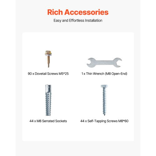 Kompletta tillbehör: Denna stolpankarbassats innehåller: Svalstjärtsskruvar M5x25 (90 st), tunn nyckel M8 med öppen ände 14 (1 st), tandade hylsor M8 (44 st) och självgängande skruvar M8x60 (44 st). Lätt att installera och bekväm att använda.