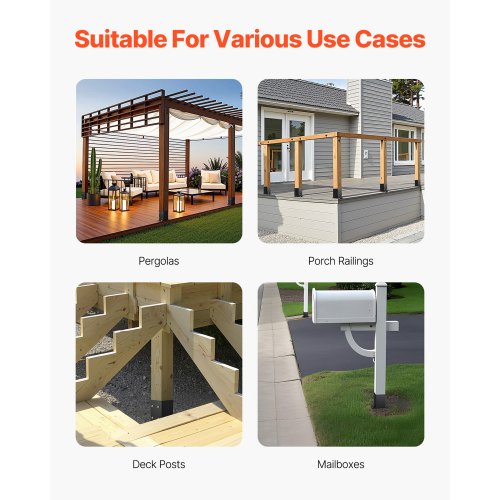 Bred användning: De dubbla skruvarna är lämpliga för både betong- och trägolvinstallationer. Denna stolpbas kan användas flitigt i pergolor, verandaräcken, pelarstöd med mera, vilket ger säkert stöd.