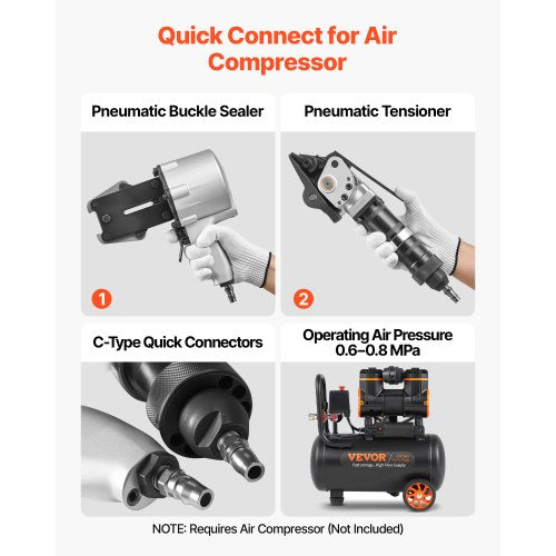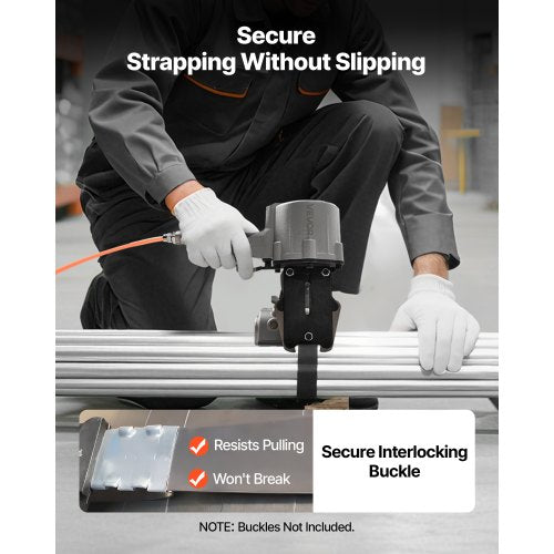 Pneumatisk stålbandningsmaskin, 8500 N spänningskraft, metallbandningsverktyg, spännare och skärförslutare för 19 mm breda metallband, kraftig delad balpress för höghållfasta förpackningar | EU