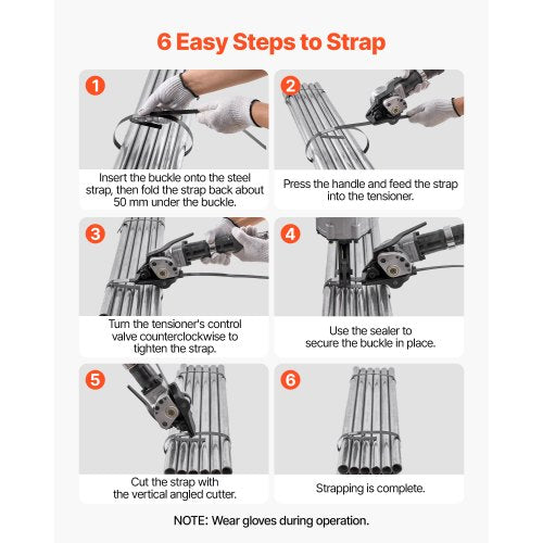 Utformad för stålband: Den kraftiga delade balpressen har en spännare och förseglare i delad design för flexibel användning. Passar stålband med en bredd på 0,748 tum och en tjocklek på 0,0315–0,0472 tum, perfekt för teamarbete.