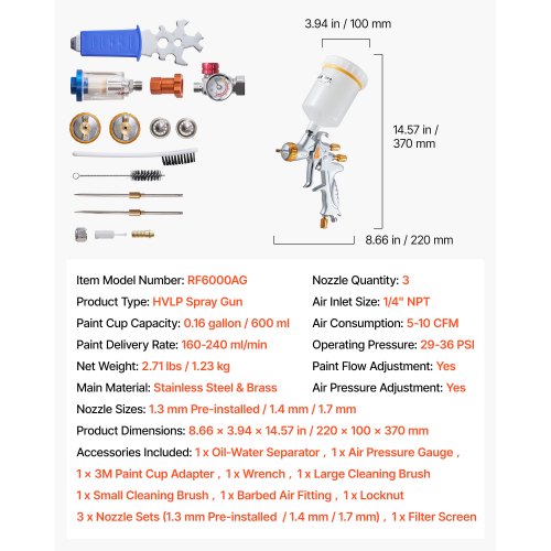 Hållbar konstruktion: Med munstycken i rostfritt stål och ett mässingsförstoftningslock för utmärkt korrosionsbeständighet och läckageskydd. Perfekt för billackering, möbelrenovering eller heminredning och gör-det-själv-projekt.