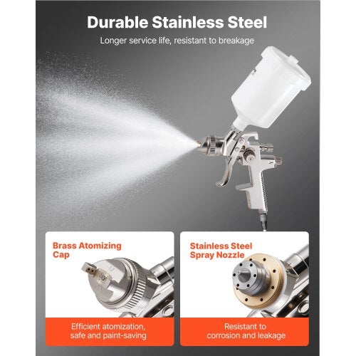 Hållbar konstruktion: Med munstycken i rostfritt stål och ett mässingsförstoftningslock för utmärkt korrosionsbeständighet och läckageskydd. Perfekt för bilmålning, möbelrenovering eller heminredning och gör-det-själv-projekt.