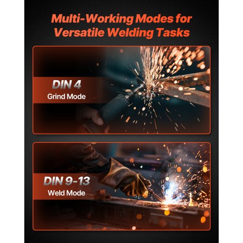 Justerbart färgomfång: Vår svetsmask i naturlig färg har justerbara DIN-färgomfång — DIN 4 (slipläge) och DIN 9–13 (svetsläge). Växla enkelt mellan arbetslägen för att förbättra effektiviteten och säkerheten vid svetsning och slipning.
