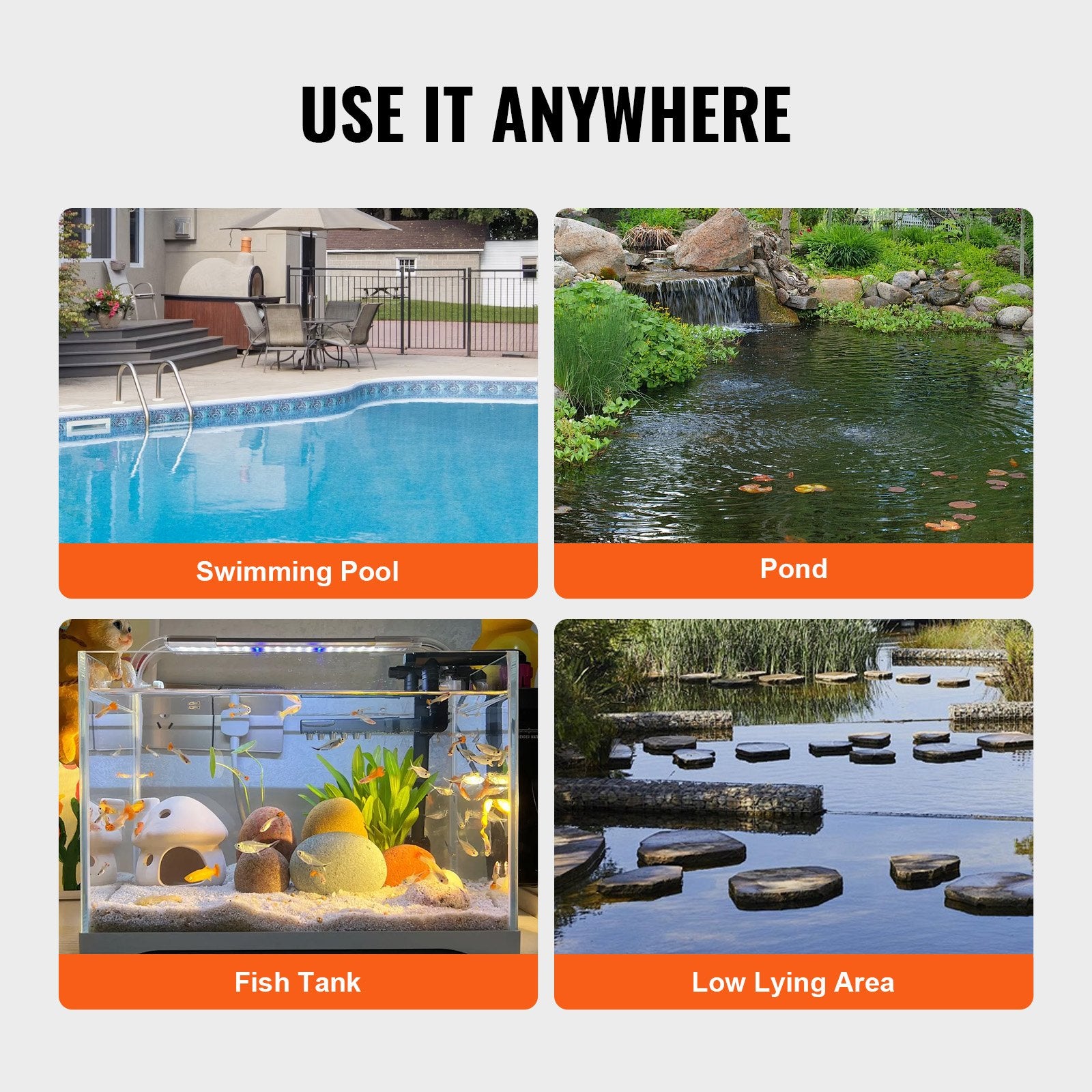 Excellent Compatibility: Our submersible utility pump comes with G1-1/2" elbow male thread, G1-1/2" straight female thread, G1", 25mm and 32mm pipe adapter, making it easy to use in any situation. The practical adapter design allows you to easily tackle various water treatment problems in your garden, improving versatility.
