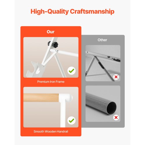 Högkvalitativ design: Tillverkad med ett ledstång i stålrör, slät målad yta och inga ojämna kanter, är vår balettstång hållbar och bekväm att hålla i. Utrustad med stora halkfria dynor som skyddar ditt golv från repor. Ger elegans och grace till alla rum.