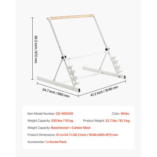 Höjdjustering i 4 nivåer: Justerbar lutningsvinkel med 4 höjdinställningar, var och en med ett steg på 5 cm. Höjdalternativen är 86,5/91,5/89,6/91,5 cm. Denna bärbara balettstång har också ett låshandtag på sidan för enkel höjdjustering.