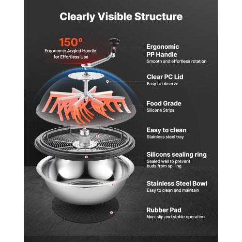 Hållbar och lätt att underhålla: De vassa bladen i rostfritt stål är konstruerade för snabb demontering och rengöring och säkerställer snabba, rena snitt, vilket sparar tid och ansträngning. De justerbara och utbytbara bladen passar olika trimningsbehov. Livsmedelsklassade silikonfingrar är luktfria, vilket hjälper till att bibehålla knoppkvaliteten.