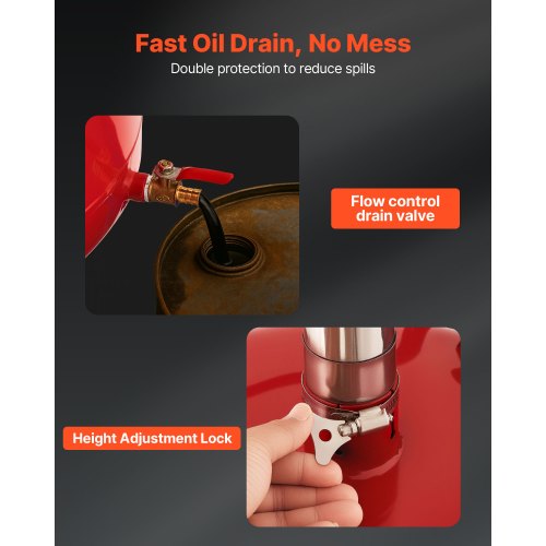 Hållbar och pålitlig: Denna oljebytestank är byggd med en pulverlackerad metalltank som motstår stötar och korrosion, och erbjuder exceptionell hållbarhet, vilket garanterar långvarig prestanda och minskar utbyteskostnaderna.