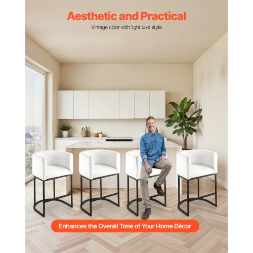 Lätt lyx och mångsidighet: Den mjuka, bekväma plyschklädseln i kombination med det breda ryggstödet, lämplig för både hem och kommersiella utrymmen. Standardsitthöjden passar olika vanliga bardiskar och köksöar.