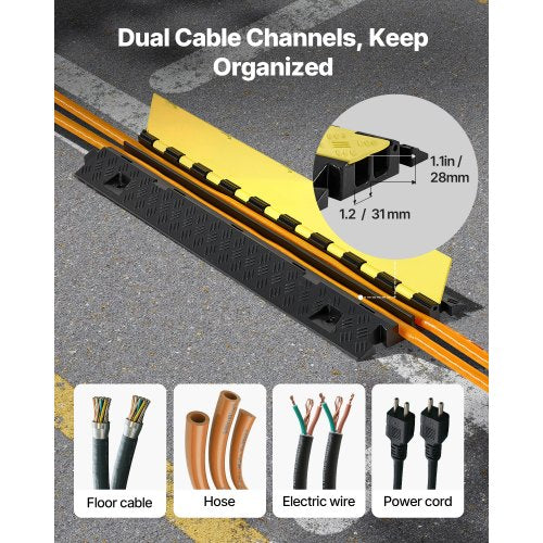 Kabelskyddsramp, 9 979 kg/axelkapacitet, 2-kanals kraftigt TPU-sladdskydd för slang, 31 x 28 mm kanal, trafikhinder med öppningsbart toppskydd, för inomhus- och utomhusbruk, 3-pack | EU