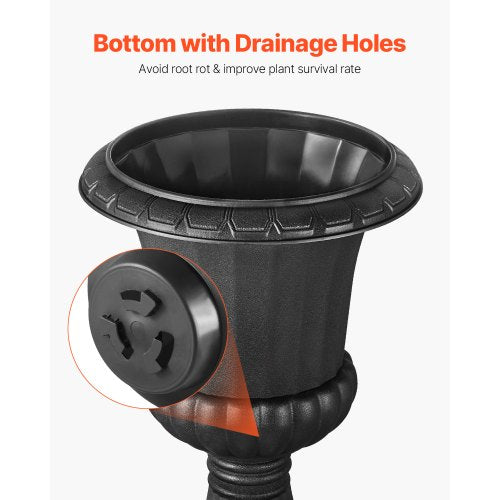 Andningsbar dränering: Denna piedestalplanterare är designad med dräneringshål och främjar luftflödet och dränerar snabbt överflödigt vatten, vilket håller dina växters rötter friska och ökar deras överlevnad.