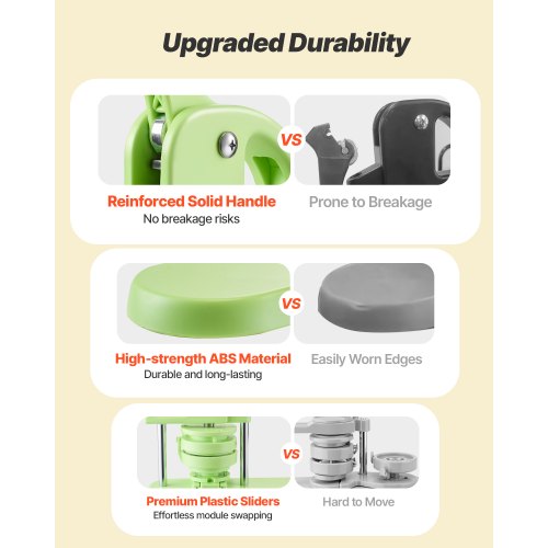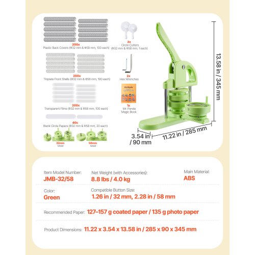 Knappmaskin, 32 mm / 58 mm 2-i-1, Plastnålstillverkare med 200 st knappdelar, Cirkelskärare och Magisk Bok, Förstärkt Ergonomiskt Handtag, För DIY-Brickor, Personliga Nålar, Grön | EU