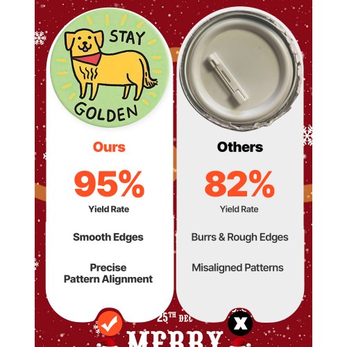 Skapa personliga presenter: Designa personliga märken för alla tillfällen. Vår knapptillverkningsmaskin fungerar även med speglar, nyckelringar, flasköppnare och magneter – förvandla din kreativitet till unika, hjärtliga minnessaker.