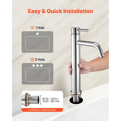 Temperatur- och flödeskontroll: Denna VEVOR köksvattenkran har ett vredgrepp som gör att du smidigt kan justera både vattentemperatur och flöde med en hand. Även när du håller ett spädbarn eller bär föremål kan du enkelt styra kranen, vilket ger en bekväm och problemfri upplevelse.