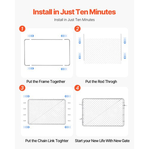 High-quality materials: The frame of the chain link fence gate is made of durable galvanized steel, ensuring exceptional durability and rust resistance in all weather conditions.