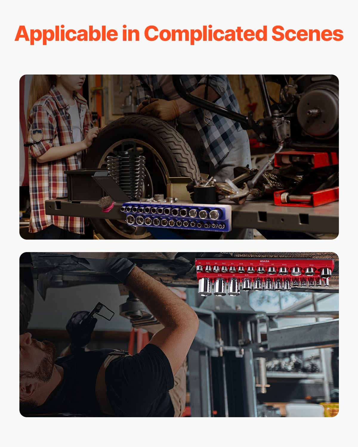 High Compatibility: Designed to be compatible with multiple socket brands, VEVOR 6PCS magnetic socket organizer set holds up to 143pcs metric and SAE standard & deep sockets., simplifies socket management, keeps your work surface clean and ensures you don't lose any sockets. Note: Sockets are not included.