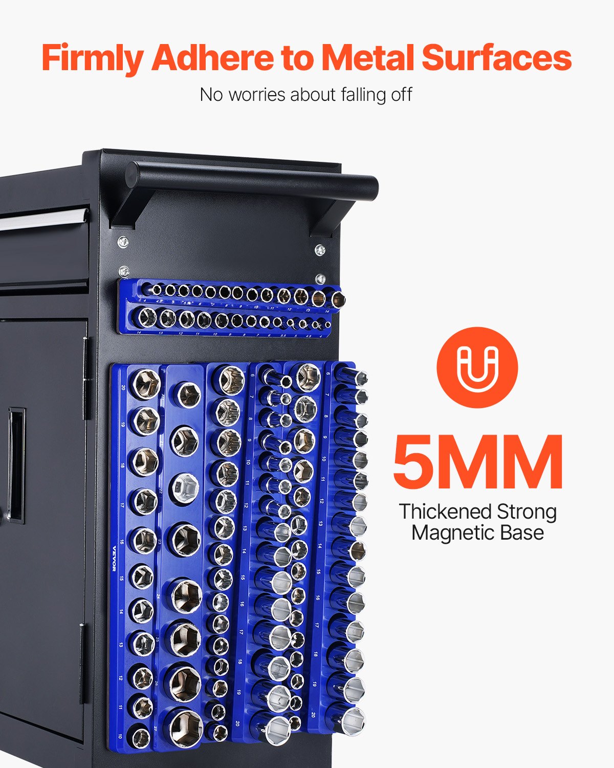 High Compatibility: Designed to be compatible with multiple socket brands, VEVOR 8PCS magnetic socket organizer set holds up to 199pcs metric and SAE standard & deep sockets., simplifies socket management, keeps your work surface clean and ensures you don't lose any sockets. Note: Sockets are not included.