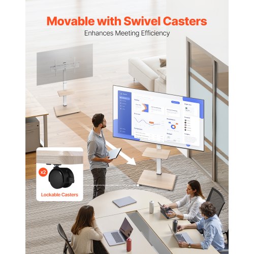 Convenient Mobility: Equipped with swivel wheels, this mobile TV mount allows you to easily rotate to adjust angles or move it to the desired position. You can easily slide it to different places in the room.