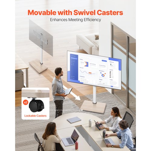 Convenient Mobility: Equipped with swivel wheels, this mobile TV mount allows you to easily rotate to adjust angles or move it to the desired position. You can easily slide it to different places in the room.