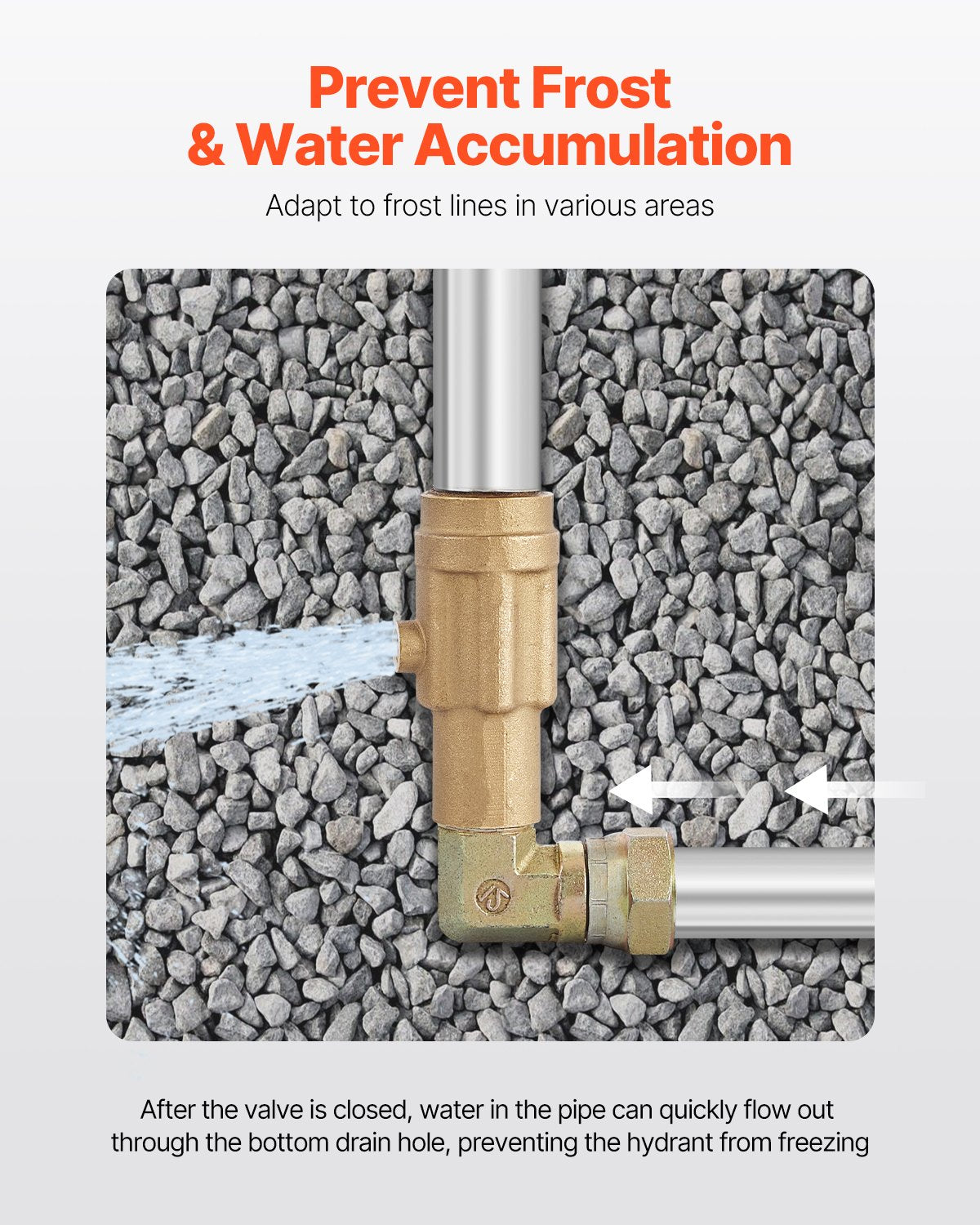 Keep the water flowing: Our 4.25 FT frost-proof yard post, with 24" burial depth, adapts to frost lines in different regions and effectively prevents pipes and faucets from freezing. With G 3/4" hose coupling and G 3/4" pipe connection, it is easy to install, perfect for garden or agricultural irrigation, washing.