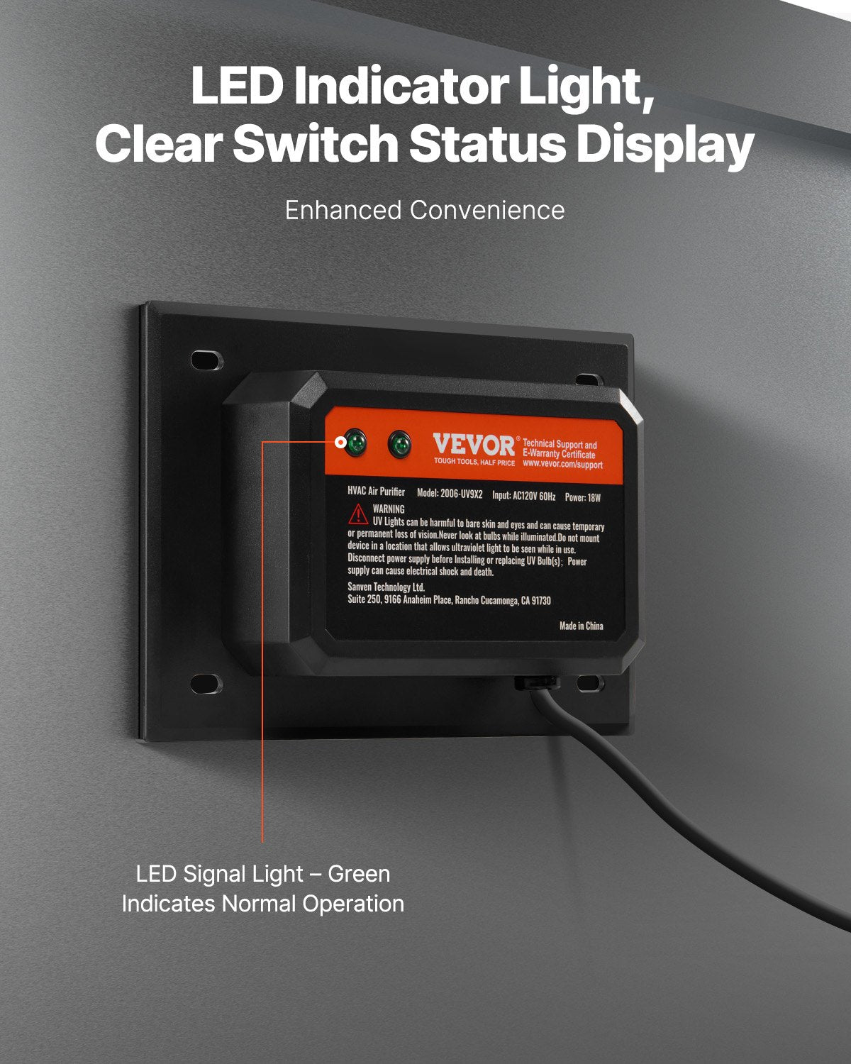 Easy to use and maintain: The mechanical switch control is simple, and the LED indicator clearly shows the working status of the UV-C lamp. The 1.5 meter extended power cord provides greater flexibility in installation.