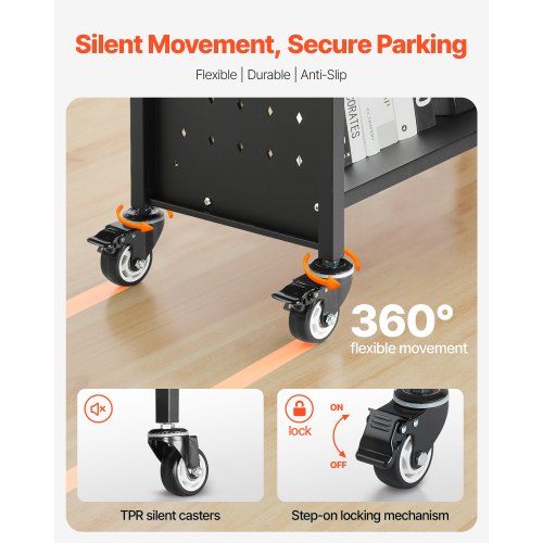 Quiet movement: Quiet TPR casters glide smoothly, and two have a locking feature for secure positioning. Easily move the book cart across wood or tile floors without disturbing anyone - perfect for libraries or nighttime
