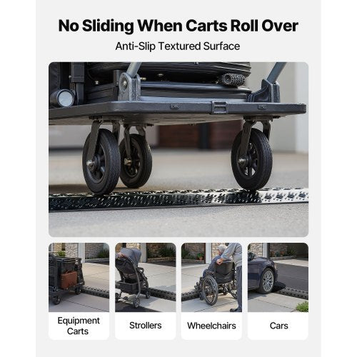 17 500 lbs/axellastkapacitet: Byggd för att hantera tung lastbilstrafik utan att spricka eller skeva sig. Vår kabelramp för nedfällbar kabel stöder stadsjeepar, skåpbilar, rullstolar, motorcyklar, cyklar, skotrar och vagnar över ojämn mark eller trottoarkanter.