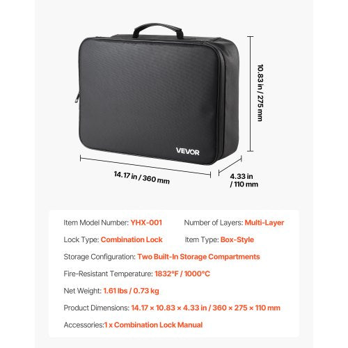 Stor förvaringskapacitet: Denna brandsäkra dokumentlåda mäter 360 x 275 x 110 mm och har tvålagersfack för rymlig förvaring. Organisera enkelt dokument, elektronik och andra föremål och förvandla kaos till ordning utan krångel med att leta.
