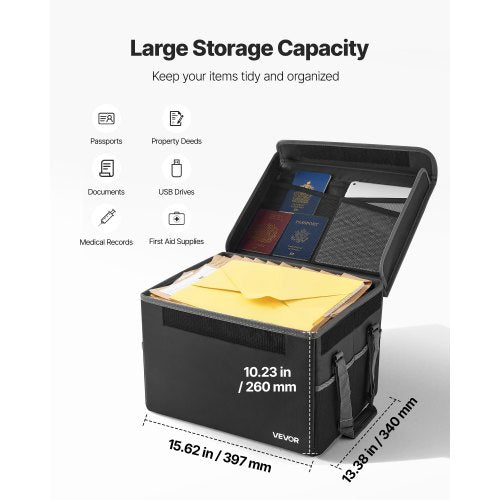Stor förvaringskapacitet: Denna brandsäkra dokumentlåda mäter 340 x 397 x 260 mm och har en design i ett lager. Den organiserar enkelt dokument, filer och elektronik och förvandlar stökiga föremål till prydlig förvaring utan besväret med att rota.