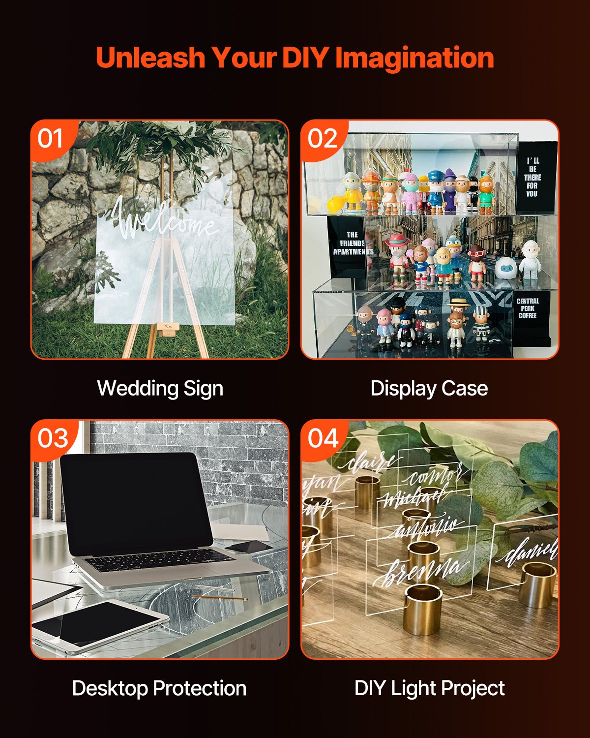 2-Piece Acrylic Sheets: Our acrylic sheets measure 24 x 48 inches with a thickness of 1/8 inch (3 mm), making them the first choice for your DIY craft projects. Plus, we offer a variety of sizes and thicknesses to seamlessly match your different needs