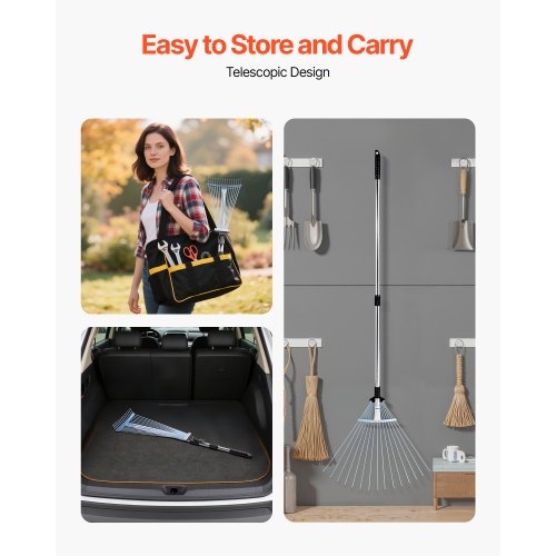 Justerbart krattahuvud: Ingen skruvmejsel behövs – utöka enkelt trädgårdskrattahuvudet från 18,5 till 56,6 cm. Det är idealiskt för att rensa löv och skräp från rabattkanter, uteplatsöppningar och under buskar, och når enkelt in i trånga utrymmen.