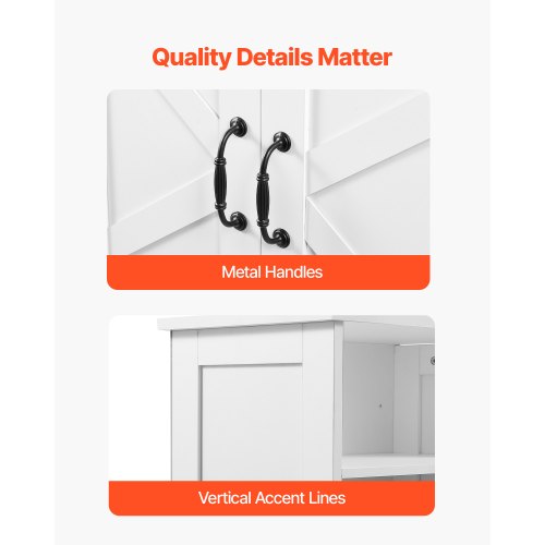 Water-resistant and easy to clean: This white bathroom cabinet is made of high-quality MDF with a waterproof coating and can withstand moisture well. It is easy to wipe clean and perfect for bathrooms and kitchens.