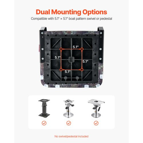 5.1" x 5.1" Bolt Hole Installation: The folding boat seat has a 5.1" bolt hole spacing. We provide corrosion-resistant screws and washers, making it easy to securely attach the seat to most boat swivels or bases. Please note that the boat base and swivel are not included.