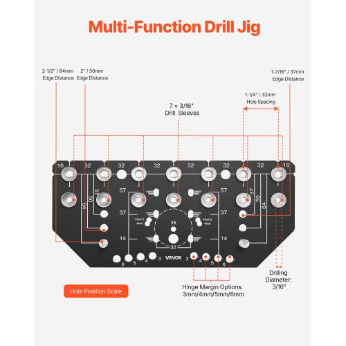 Aluminum Alloy with Laser Markings: Our shelf pin jig and hinge jig are made of high-strength aluminum alloy for durability. Clear, durable laser-etched scales ensure precise alignment during long-term use.