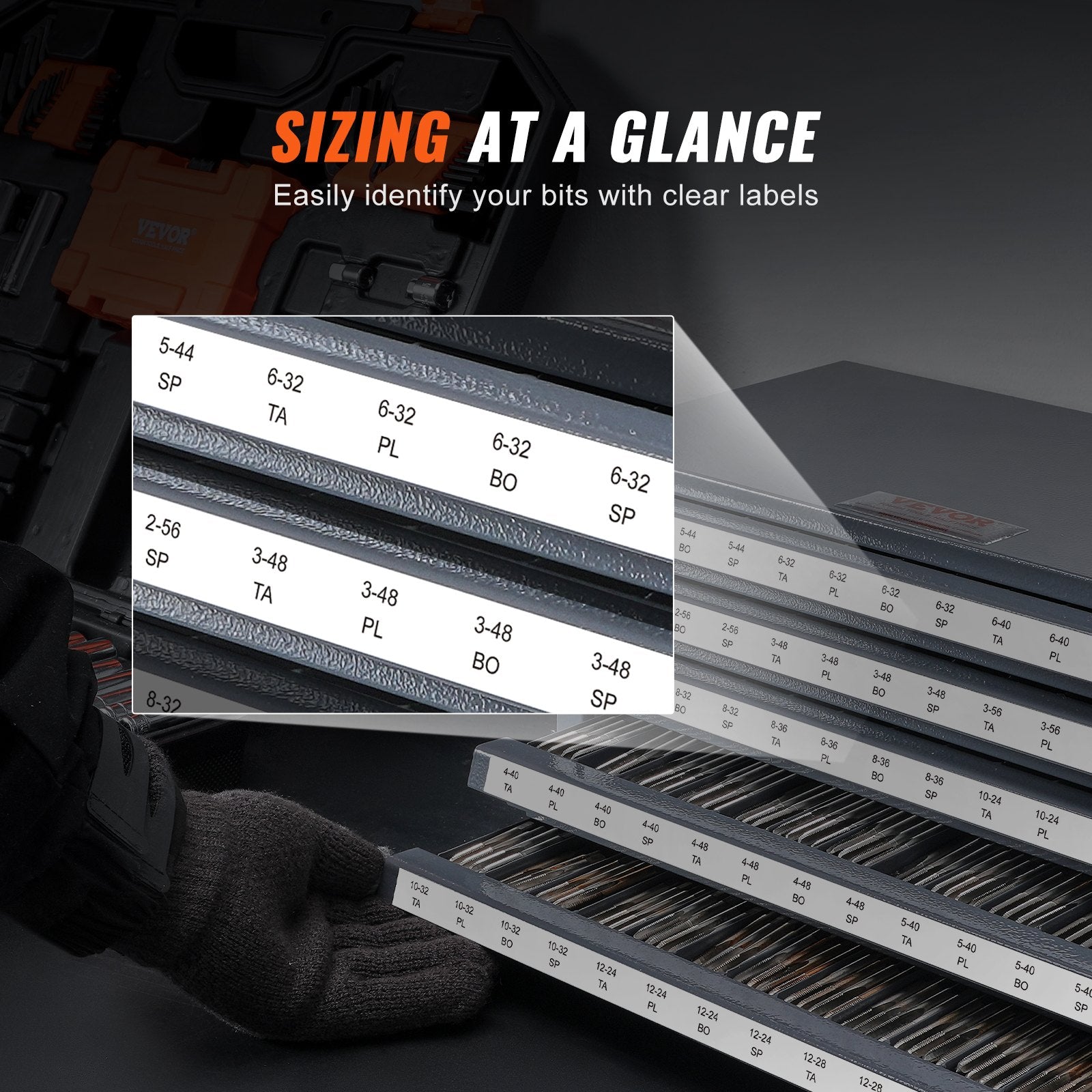 Efficient Storage Organizer: This five-drawer, 60-compartment tap cabinet effortlessly stores your tap collection. It holds taps in sizes from #2-56 to #12-28. Labeled compartments allow for quick identification and organization.