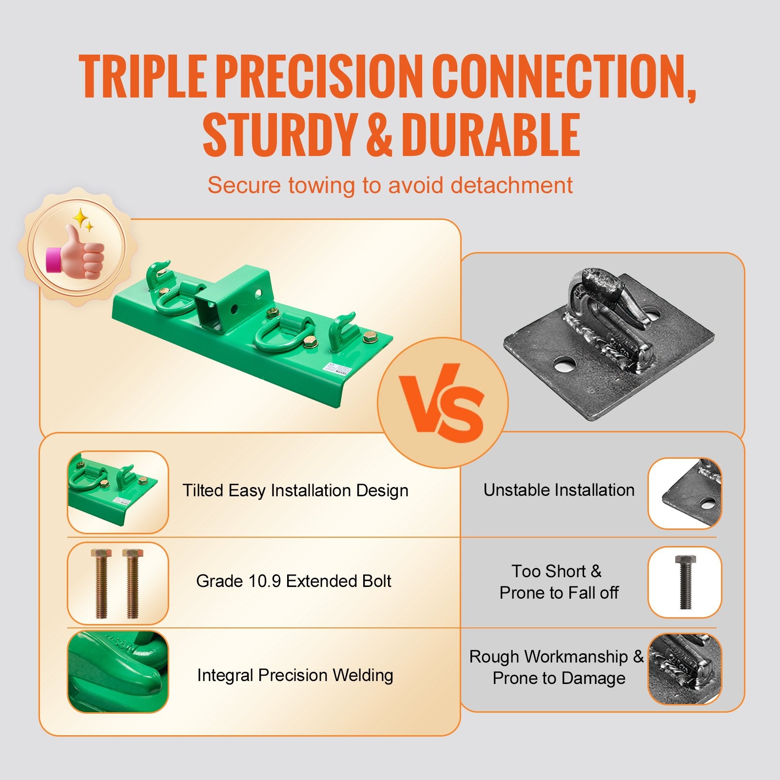 High load capacity: The tractor bucket hooks are made of G70 grade steel, which provides high strength and wear resistance, with a maximum load capacity of 12,000 lbs. It has a wide towing range and can accommodate various sizes, weights and shapes of towed objects, making it easy and quick to complete towing tasks.