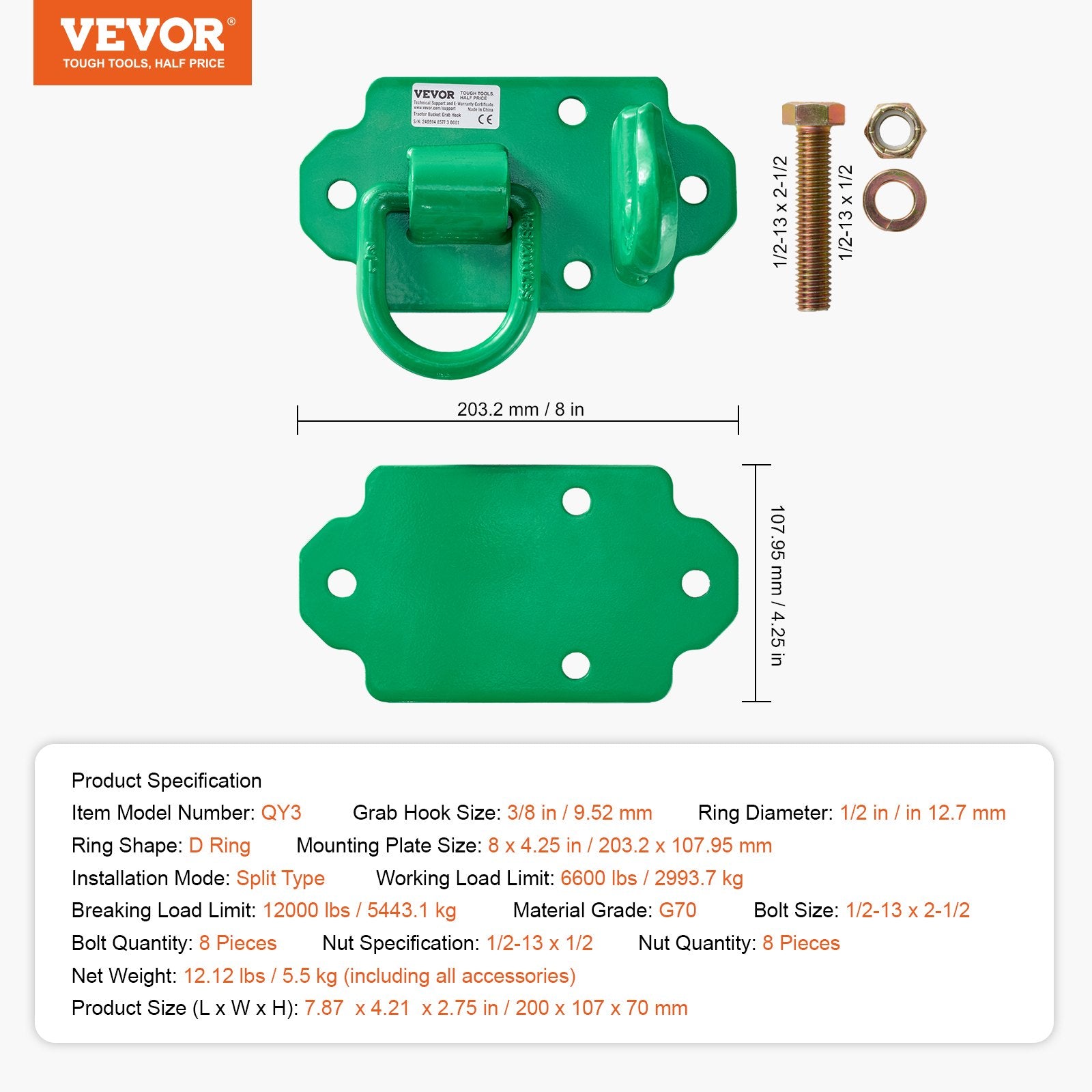 High Load Capacity: The tractor bucket hooks are made of G70 grade steel, which provides exceptional strength and durability. With a maximum load capacity of 12,000 lbs, it offers a wide towing range and can accommodate various sizes, weights and shapes of towed objects. This design ensures that towing tasks can be completed quickly and easily, making it an ideal choice for both agricultural and industrial applications.