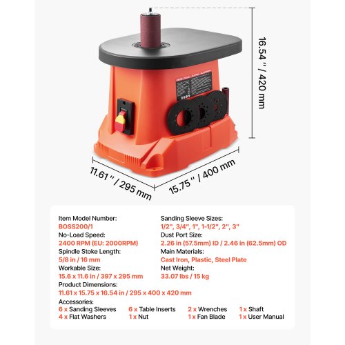 oscillerande spindelslip, 2000 varv/min bänkslip med 6 hylsor (12,7–76,2 mm), 16 mm slaglängd och 397 x 295 mm gjutjärnsbord för möbelfinish, hantverksslipning, gör-det-själv-träbearbetning | EU