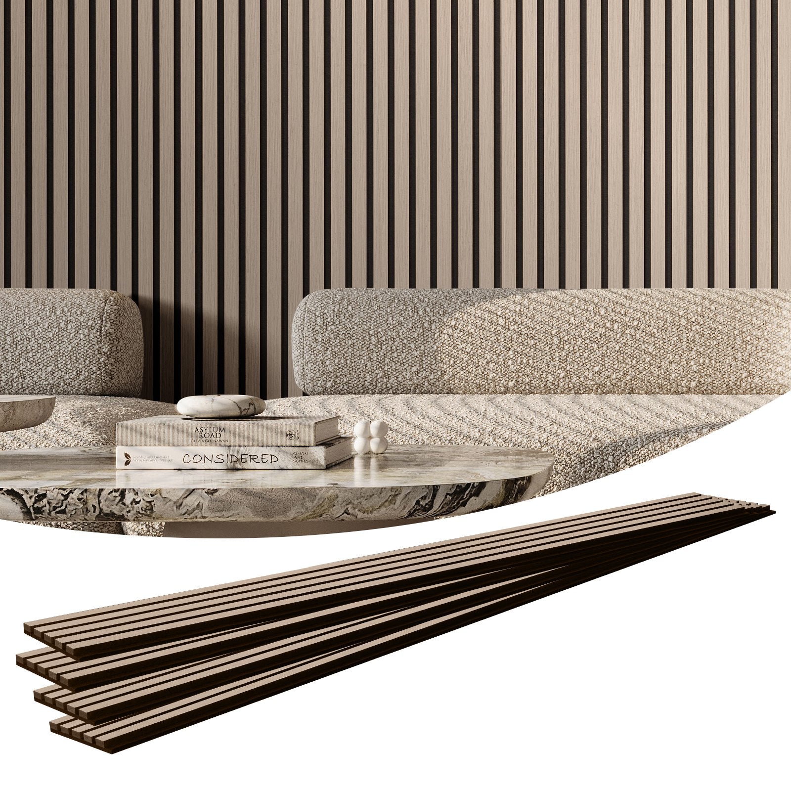 E0-klassade MDF-remsor: Dessa akustiska väggpaneler har en treskiktsstruktur som kombinerar träfiberlaminat, MDF-material och polyesterfiber med hög densitet. Med formaldehydemissioner som uppfyller E0-standarderna och en brandklassning av klass A, garanterar de en säker och miljövänlig användningsupplevelse.