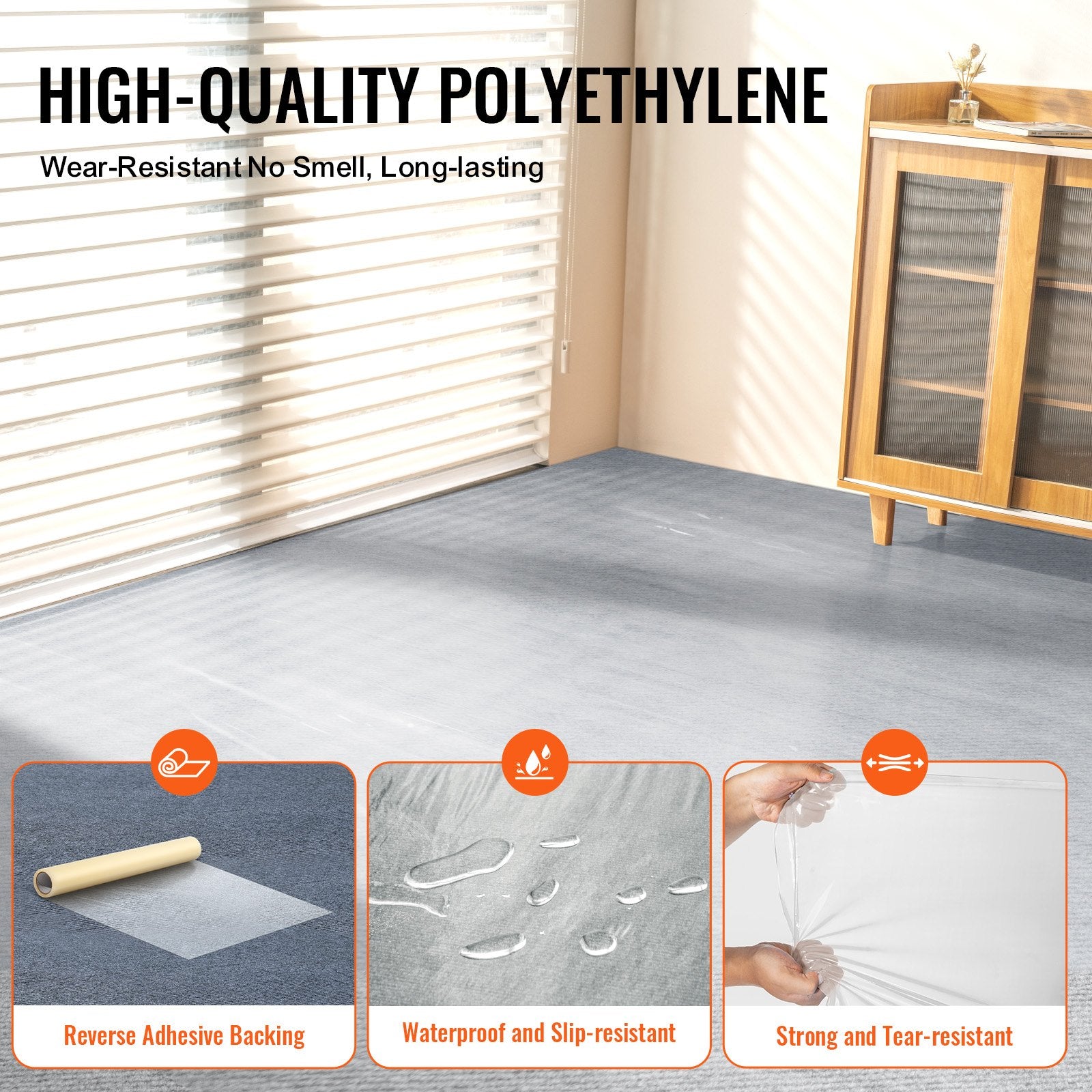 Högkvalitativt material: Högkvalitativ polyeten, slitstark och luktfri. Riktad rygglim, vattentätt och halkskydd, rep- och kollisionsbeständigt, starkt och rivtåligt. Ge ditt golv ett heltäckande skydd!
