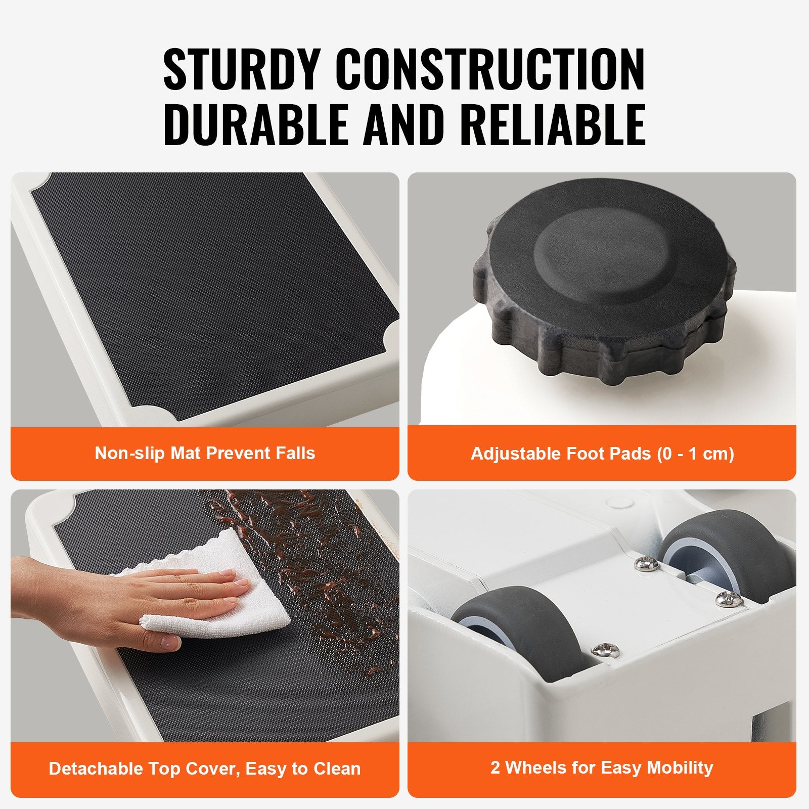 Stabil och rörlig: Prioritera användarsäkerheten med vår halkskyddsmatta, som ger en stabil plattform och förhindrar oavsiktliga halkar. Justerbara fötter (0-1 cm) anpassar sig till olika ytor för exakt mätning, och 2 hjul möjliggör enkel rörelse.