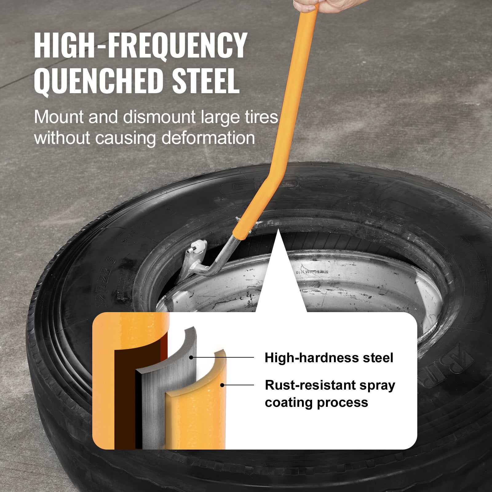 Effektiv demontering och installation av däck: VEVOR 3-delade verktygssats för däckmontering (inklusive ett demonteringsverktyg, pärlhållare och monteringsstång) ger en komplett och bekväm verktygsuppsättning för snabb och enkel däckrenovering och -byte. Kom tillbaka på vägen snabbt och njut av din körtur med ett nytt däck.