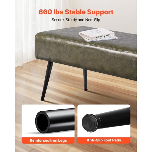 Sovrumsbänk i PU-läder med metallben Skobänk för entré Grön | EU
